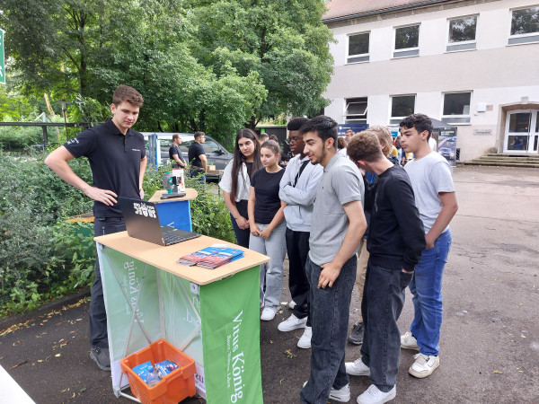 Die Schülerinnen und Schüler erhielten beim Autohaus Bruno Widmann Einblicke in die Kfz-Mechatronik. Sie lernten die grundlegenden Wartungs- und Reparaturarbeiten an Fahrzeugen kennen. Auch hier wurde immer wieder die Wichtigkeit von technischem Verständnis und Problemlösungsfähigkeiten betont.