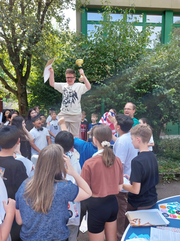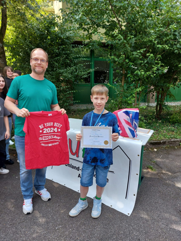Ein besonderes Highlight des Tages war die herausragende Leistung von Albert Benghia aus der Klasse 5b. Albert erreichte im Wettbewerb "The Big Challenge" in seiner Klassenstufe den ersten Platz im Bundesland Baden-Württemberg und den zweiten Platz deutschlandweit. Diese außergewöhnliche Leistung wurde von allen Teilnehmern und Lehrkräften der Schule mit tosendem Beifall gefeiert. An dieser Stelle noch einmal: „Herzlichen Glückwunsch Albert! Die ganze URS-Familie ist stolz auf Dich!“
