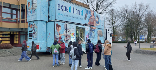 Mit der mobilen Berufsorientierung bieten die Südwestmetall und die Agentur für Arbeit Schülerinnen und Schülern die Möglichkeit, vielfältige Facetten und Einsatzmöglichkeiten der Digitalisierung im Berufsalltag experimentell zu erleben.