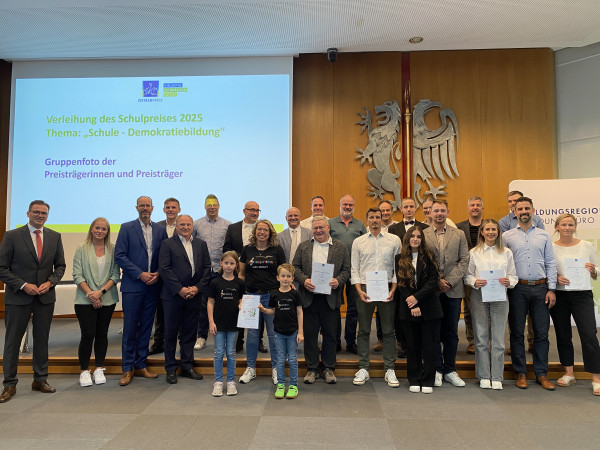 Markus Kilian, Geschäftsführer der Bezirksgruppe Ostwürttemberg des Arbeitgeberverbands Südwestmetall, und Renzo Costantino, Leiter der Regionalstelle Schwäbisch Gmünd des Zentrums für Schulqualität und Lehrerfortbildung (ZSL), unterstrichen in ihren Grußworten die Wertschätzung gegenüber dem schulischen Engagement im Ostalbkreis. Dabei betonten sie die Bedeutung der Demokratiebildung und würdigten das große Engagement der teilnehmenden Schulen.