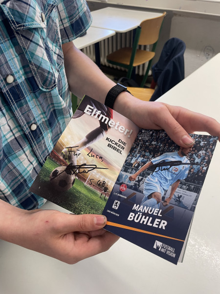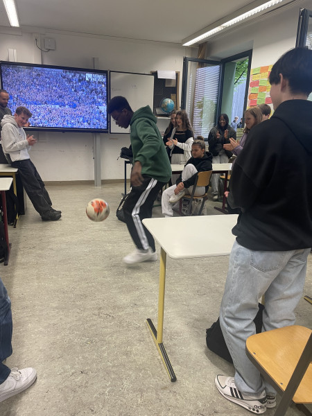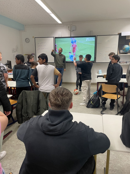 Der ehemalige Profifußballer Manuel Bühler von „Fußball mit Vision“ war im Rahmen des katholischen Religionsunterrichts an der Uhland-Realschule mit bilingualem Zug zu Gast.