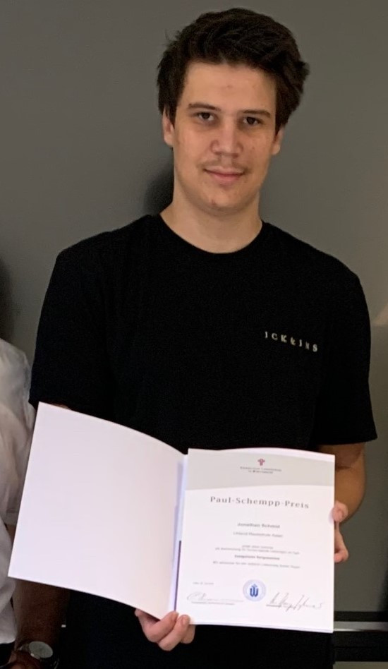 Große Ehre für Jonathan Schmid aus der Klasse 10d - zum Ende seiner Schulzeit an der URS ist er zum Preisträger des „Paul-Schempp-Preises“ gekürt worden. Religionslehrerin Anja Freimann und Schulleiter Gerd Steinke überreichten dem Gewinner die Urkunde zum renommierten Fachpreis, der nach dem Württembergischen Pfarrer, Religionslehrer und Theologieprofessor Paul Schempp benannt ist, für seine hervorragenden Leistungen im Fach "Evangelische Religionslehre".