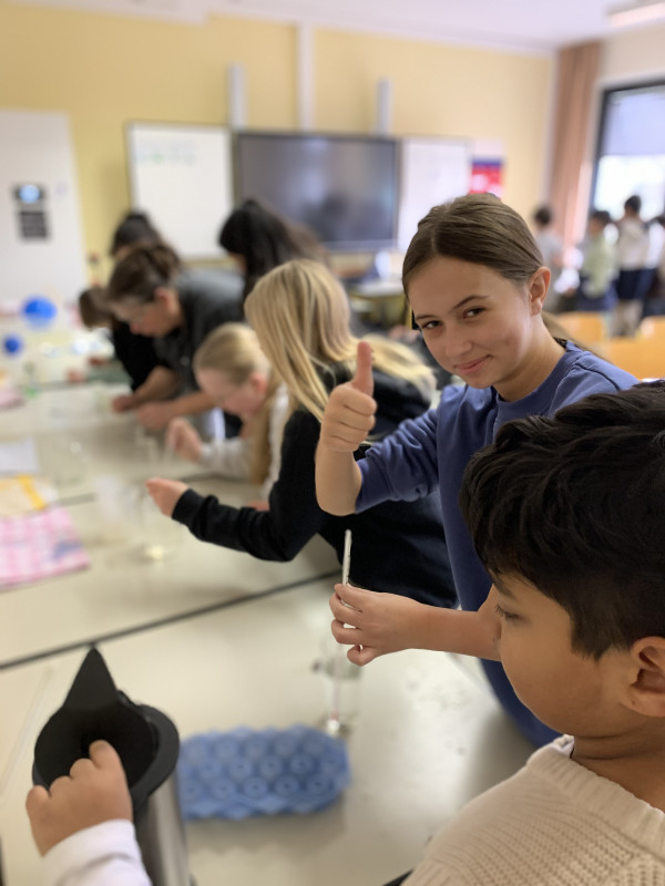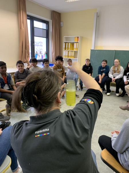 Mithilfe des explorhino-Teams der FH Aalen holten sich die Schülerinnen und Schüler der Klasse 5a das Forschungslabor direkt in ihr Klassenzimmer. Spannende Experimente rund um das Thema „Wasser“ begeisterten alle und ließen keine Fragen mehr offen.