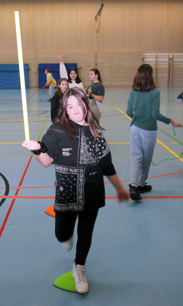 Im Rahmen dieses Projektes kam Patrick Stöppler an die Uhland-Realschule und übergab eine Bewegungsbox mit Kleingeräten für den Sportunterricht sowie Lehr- und Lernmaterial zur Bewegungsbildung. Die Schülerinnen und Schüler durften die Geräte gleich ausprobieren und hatten jede Menge Spaß an der Bewegung.
