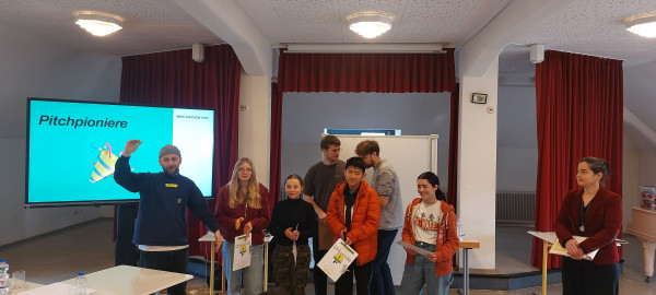 Die B. Widmann Stiftung aus Aalen ermöglichte den Besuch der erfahrenen Geschäftsgründer Levin Trautwein und Max Hartmann an der Uhland-Realschule mit bilingualem Zug in Aalen. Diese nahmen die Schülerinnen und Schüler der Klasse 9c in ihrem Workshop PITCH PIONIERE für einen Tag mit in die Welt der Startup-Szene. Am frühen Morgen berichteten Max und Levin von ihren eigenen Firmengründungen. Die Schülerinnen und Schüler waren sofort begeistert und vom Unternehmergeist angesteckt, in ihrem Tatendrang nicht mehr zu bremsen. Schnell wurden Kleingruppen eingeteilt, um an eigenen Geschäftsideen zu arbeiten.