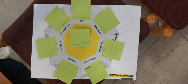 Die Schülerinnen und Schüler der Klasse 9c lernten von Max und Levin, dass eine gute Idee nicht ausreicht, um ein erfolgreiches Startup zu gründen. Wichtige Schritte auf dem Weg nach oben sind beispielsweise die Patentierung des Produktes oder der Schutz des Markennamens. Außerdem überlegten sich die Gruppen sinnvolle Lösungen für die Produktion, Kundenakquise und Vertrieb und legten sich auf Zielgruppen ihrer jeweiligen Erfindungen fest. Nach derlei strategischen Überlegungen war bei der Anfertigung von Prototypen das handwerkliche Geschick der Schülerinnen und Schüler gefragt.