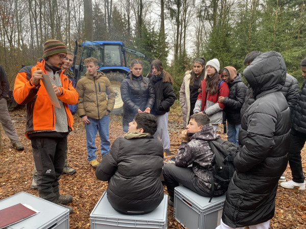 Andere Schülerinnen und Schüler markierten und fällten zusammen mit Förstern von Forst BW kleinere Bäume, um Platz für die Zukunftsbäume zu schaffen.