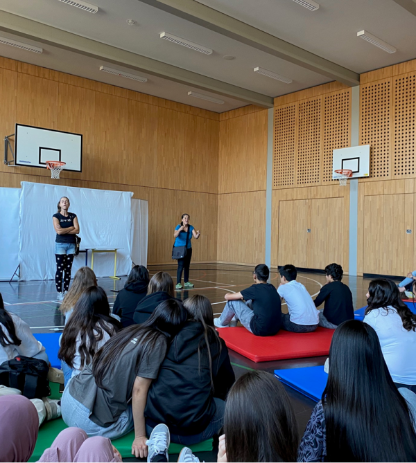Nach der etwa einstündigen Aufführung fand eine Nachbesprechung mit den Klassen, der Schulsozialarbeiterinnen der Stadt Aalen und den Schauspielerinnen statt. Hier konnten die Schülerinnen und Schüler Fragen stellen, ihre Eindrücke schildern und gemeinsam mit den Schulsozialarbeiterinnen über die Themen und Gefahren des Stücks sprechen. Es war beeindruckend zu sehen, wie offen und interessiert sich die Jugendlichen mit dem Gesehenen auseinandersetzten.