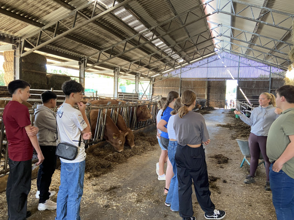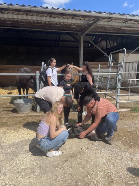 Außer Kühen gibt es dort auf dem Bauernhof noch Ziegen und Pferde und natürlich einen Hofhund, der uns die ganze Zeit beim Hofrundgang begleitet hat.
