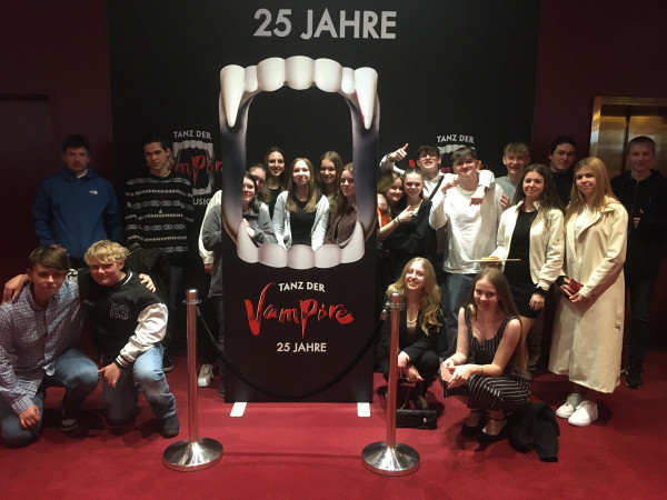 Kunst und Kultur spielten in den vergangenen Jahren aufgrund der Corona-Pandemie im Schulleben lediglich eine untergeordnete Rolle. Umso schöner war es, dass es in diesem Schuljahr endlich wieder möglich war, mit 48 interessierten Schülerinnen und Schülern sowie deren Lehrkräften das Musical „Tanz der Vampire“ im SI-Centrum in Stuttgart zu besuchen.